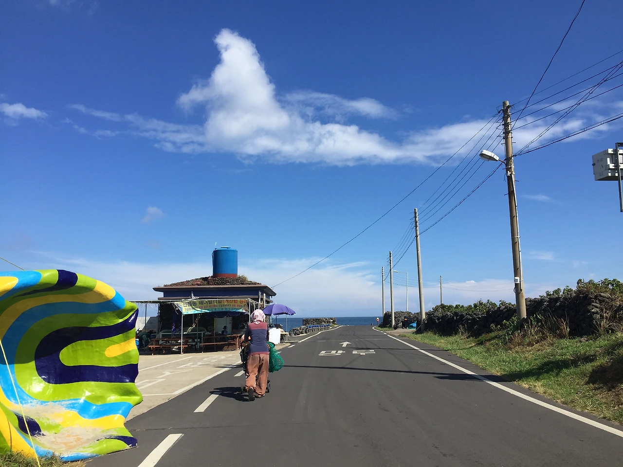 뚱해 보이는 뚱뚱한 고양이와 아침 인사를 나누고(고양이는 결국 나와 산책을 해주지 않았다. 흥) 흥겨운 아침산책을 했다. '거 참 드럽게 말 안 듣는다'는 뉘앙스의 친절한 게스트하우스 주인분을 뒤로하고 결국 걸어서 성산항으로 향하.... 다가 말고 중간에 버스를 탔다. 사람 없는 도로에 쌩쌩 달리는 큰 차들이 조금은 무서워서였다. 그래도 살아서 우도를 들어가 보고 싶었기에.