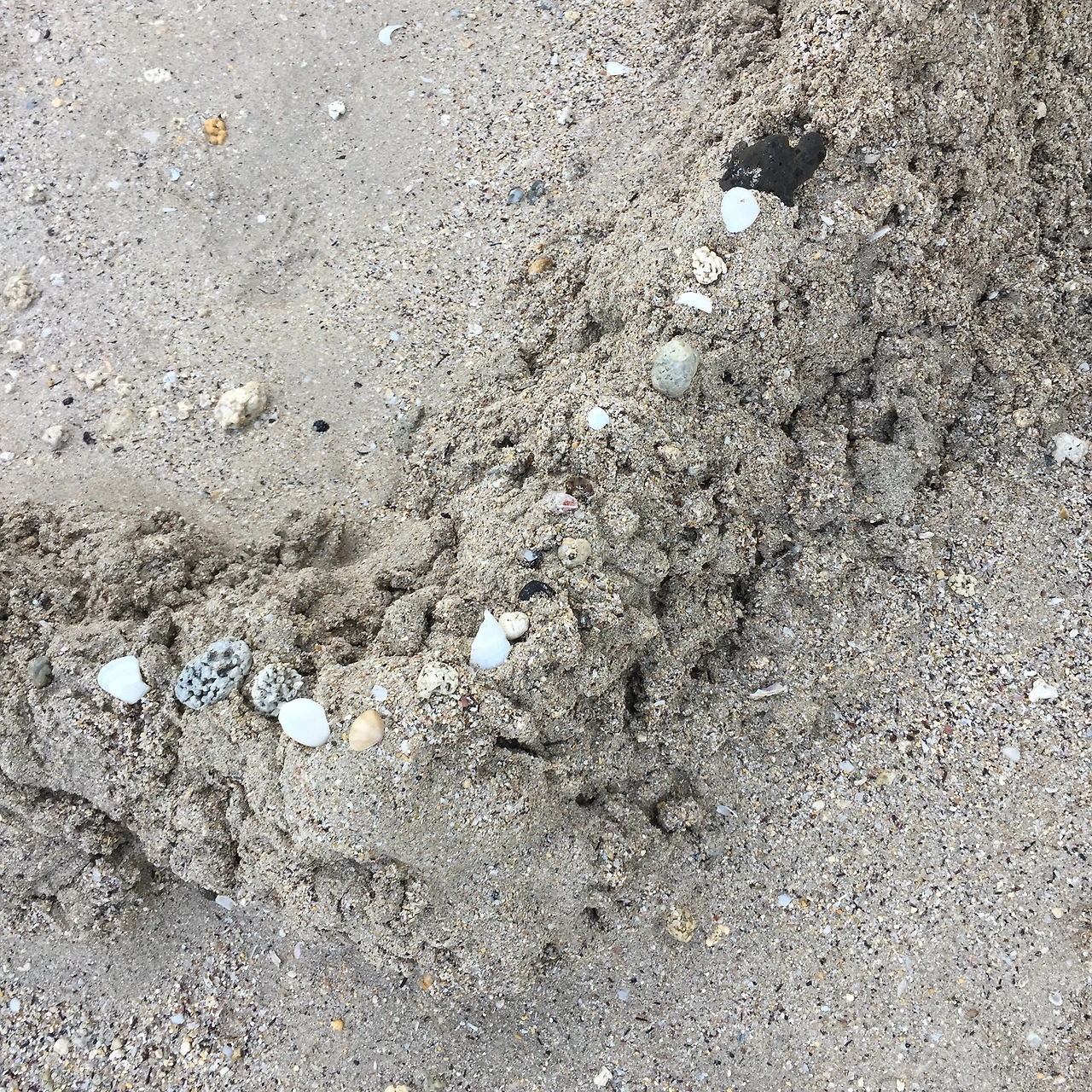 수영(?)하다 지친 우리는 해변가에 앉았다. 그리고 누구랄 것 없이 모래성을 쌓기 시작했다. 친구는 벽을 쌓고, 나는 디자이너의 본능으로 그 위에 데코레이션을 했다. 세월을 품고 돌이 된 산호들과 바닷소리가 들리지 않을 만큼 작은 소라를 위에 올리니 우리의 성벽이 더욱 특별해졌다.