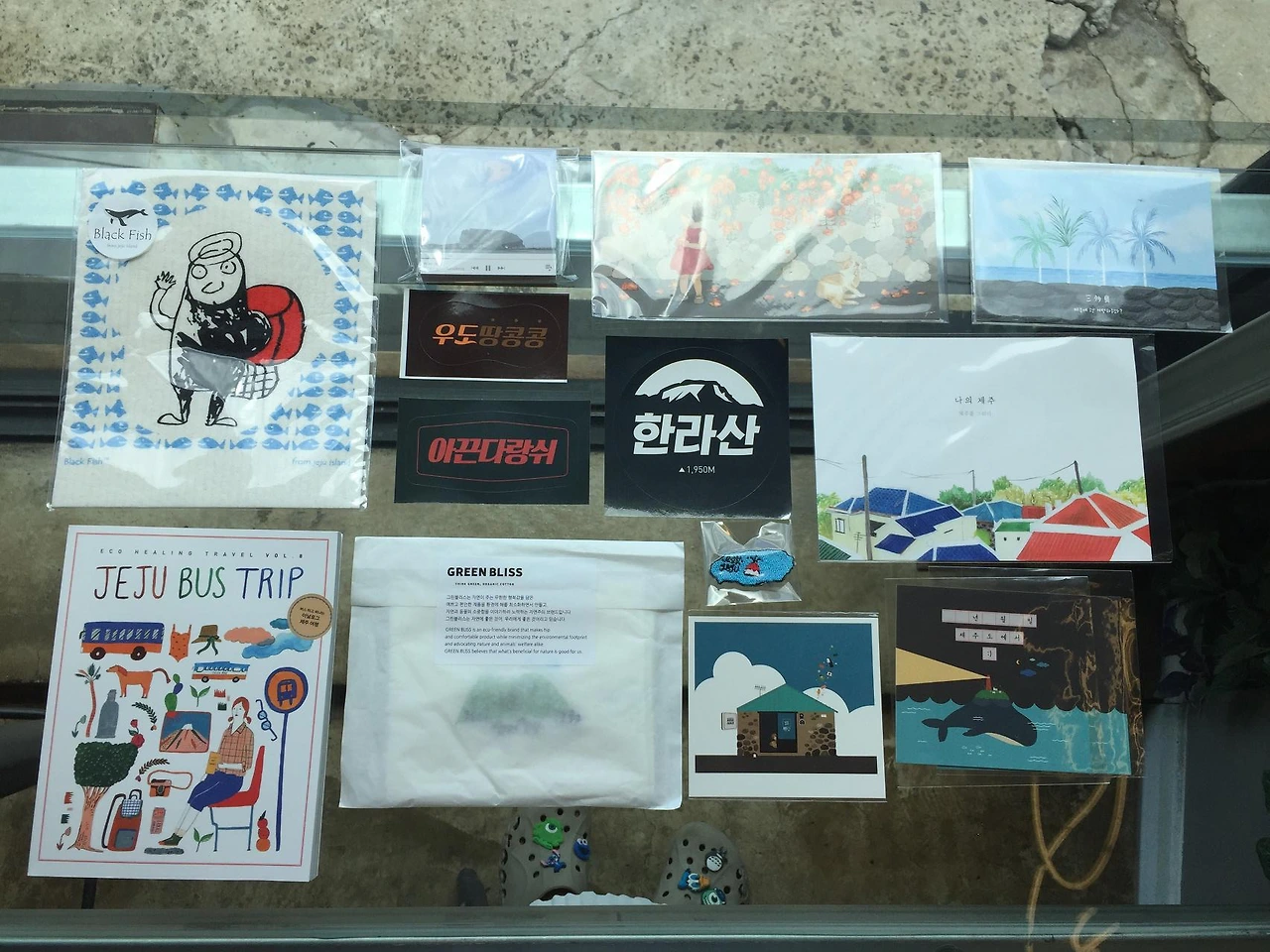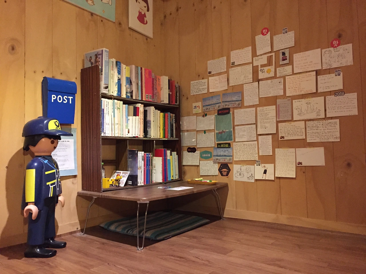 금강산도 식후경이라고 오늘도 예쁜 쓰레기 수집가는 게스트하우스 주인분이 같이 운영하고 있는 잡화점에 들렀다. 이 요상하고도 발칙한 곳은 결국 나를 소소한 탕진의 길로 이끌었다. '엄마한테 등짝 스매싱을 맞을 것 같은'의 참신한 캐치프레이즈를 가진 이 공간은 내 등짝을 내리칠 엄마와 함께 살지 않는 혼족의 지갑에 아주 관대하게 만들었다. 언젠가 나도 여행하며 모은 엽서나 소소한 것들로 가득한 공간에서 맥북을 켜고 앉아 있는 저 그림을 그려보리라. (사실, 내 방은 이미 그러하다..)