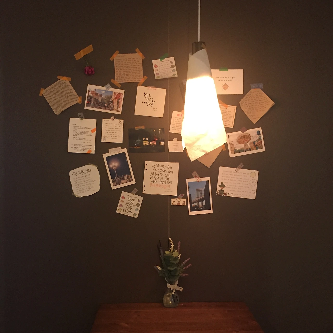 벽 한편에 툭툭 붙은 엽서들도 이렇게나 갬성충만해버렸고~
