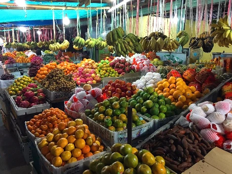 노을 진 바닷가를 거닐다 저녁을 먹고, 꿈에 그리던 열대과일 화채! 를 해 먹기 위해 시장으로 갔다.