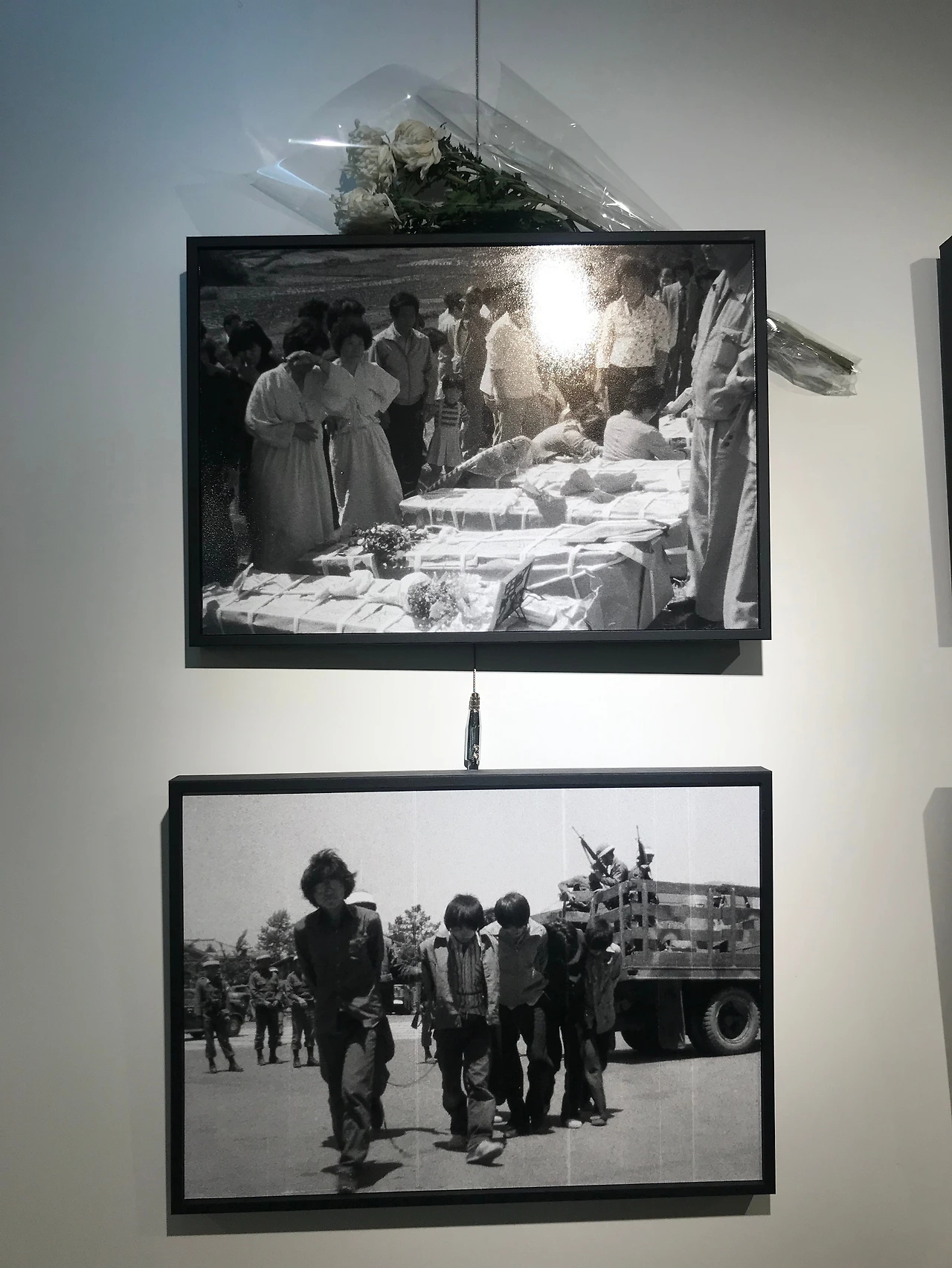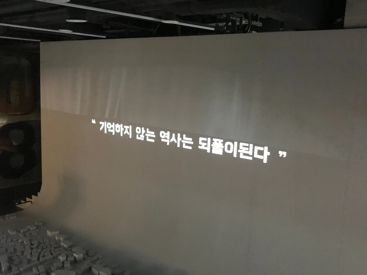 10층을 따라 9층으로 내려와 그날의 기록들을 더욱 찬찬히 살폈다. 어렸을 때부터 무심코 다니던 수많은 곳들이 결코 잊어서는 안 될 곳들이었다는 사실에 마음 한편이 아렸다. 사진 위, 누가 놓고 갔을까. 하얀 국화 세 송이가 놓여있었고, 누구도 전시물에 해가 간다는 명목으로 놓여진 마음을 치우지 않았다.