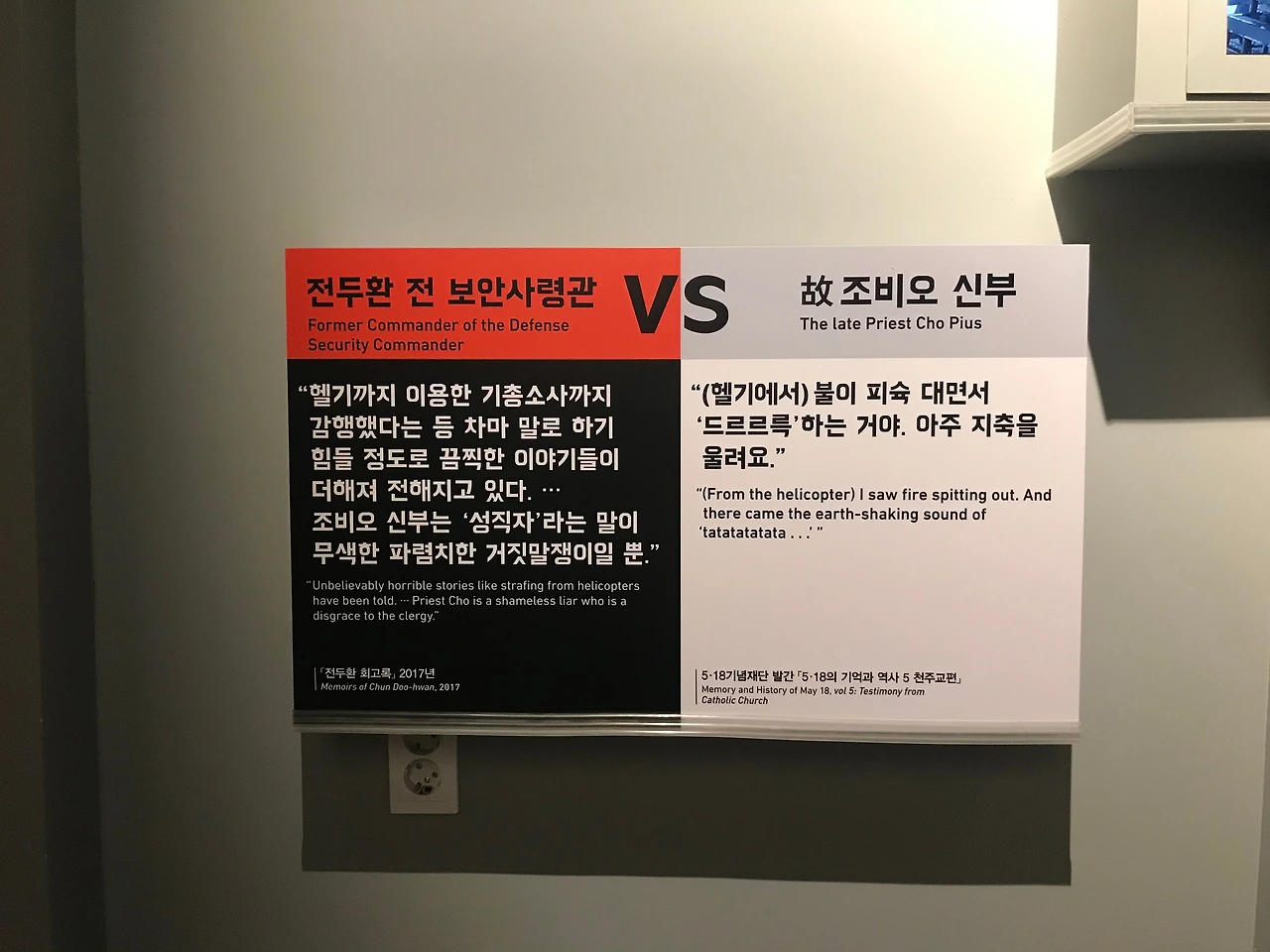 지난 2020년 4월 전두환이 고(故) 조비오 신부에 대한 사자명예훼손 혐의 재판을 위해 광주에 왔다. 그는 여전히 헬기를 통한 사격이 없었다고 했고 그의 회고록에선 조비오 신부님의 증언을 '파렴치한 거짓말'로 만들어 버렸다.