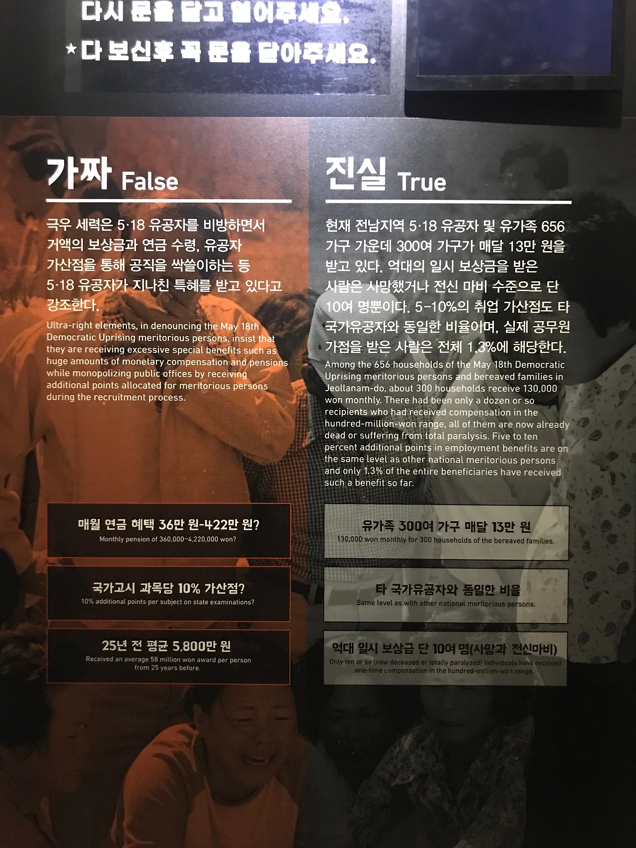 전일빌딩 10층 전시관엔 여전히 우리의 아픈 곳을 흔드는 가짜 뉴스들에 대한 진실이 있다. 빌딩에서 사용되던 옛 문을 그대로 살려 문이 달린 박스들을 만들었고, 그 문을 열면 문 밖에 써진 가짜 뉴스들에 대한 진실이 드러난다. 이 땅의 민주화를 위해 계엄령을 철폐하라는 학생들과 시민의 목소리가 '빨갱이', '폭도', '괴뢰집단'으로 둔갑한 것은 TV, 신문, 라디오, 전화 모든 통신망의 합작품이었고 순식간이었으며 어쩌면 여전한 일들이다.