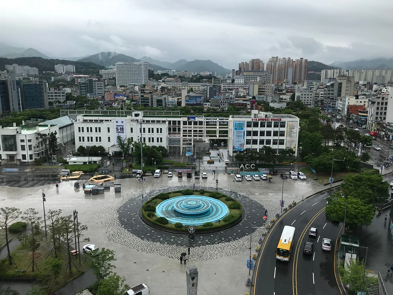 옥상을 보고 내려와 10층, 9층으로 이동하라는 친절한 해설사 선생님의 말을 따라 옥상으로 먼저 올라갔다. 사직공원 전망대부터 조선대학교, 무등산 그리고 구 전남도청과 상무관, 분수대 광장이 한눈에 보인다. 광주에 또 이런 광경이 있을까 싶은 곳이었다.