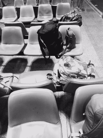 화장실에서 대충 씻고, 공항 노숙을 하기 위해 빈 의자를 찾아 가방을 메고 누웠다.