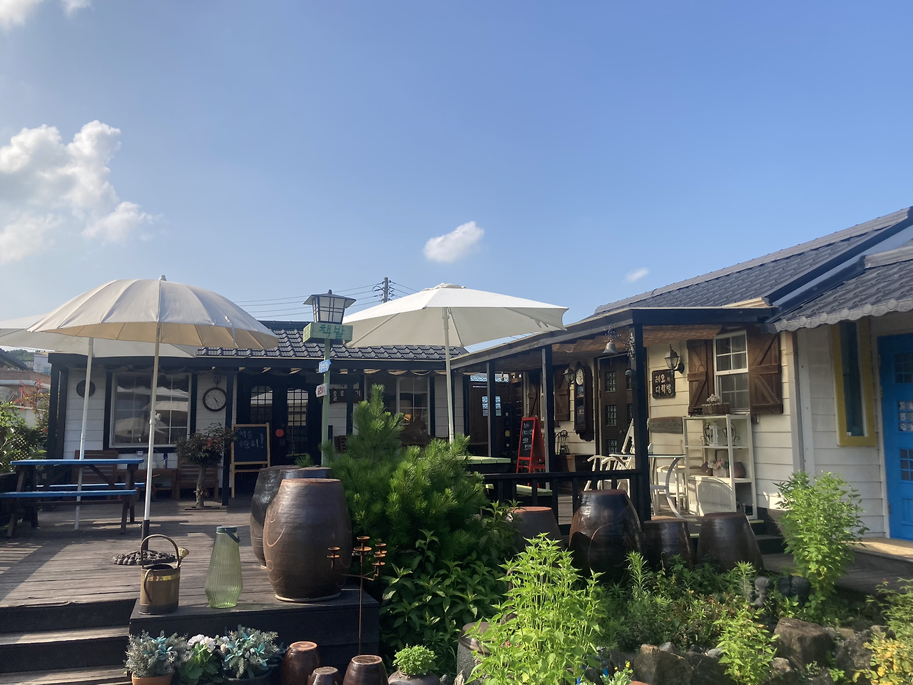 버스에서 내려 조금 걸으니 오래된 시골 동네 같은 골목이 나왔다. 그 끝에 ‘오월의 푸른하늘’이 있었다. 산과 능선을 나란히 하는 작은 집. 풀과 꽃 그리고 나비가 많은 곳이었다.