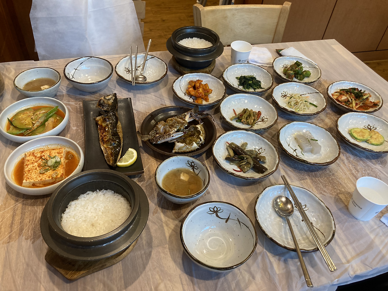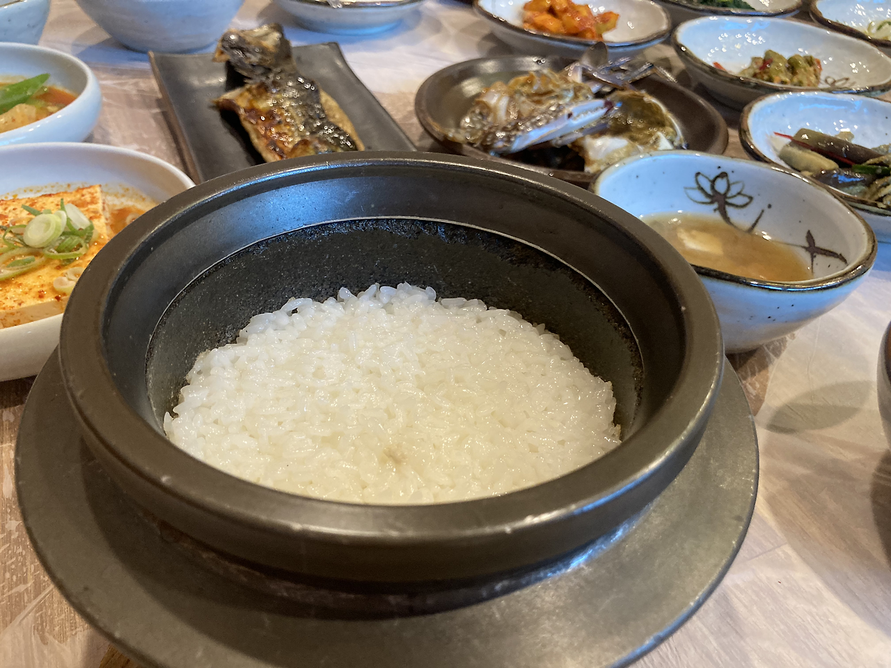 숙소에서 10분 정도 산책하듯 길 건너 식당을 향했다. ‘마산아구 이천쌀밥’ 집에서 뽀얀 쌀밥에 고등어, 11첩 반상을 받았다. 일기를 쓰며 다시 봐도 사진에서 윤기가 흐르는 것 같다. 역시 한국인에게는 밥. 그 기본이란 것이 가장 중요하다.