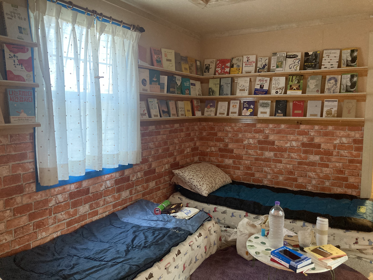 서점 지기의 안내를 받고 숙소를 이루고 있는 여러 개의 서점(헌책방, 독립서가 홀로 책방, 본서점)을 둘러보았다. 시골집을 가다듬어 책방을 만든 서점 지기의 안목과 실행력에 온 마음으로 환호하며 우리는 마음껏 기뻐했다.