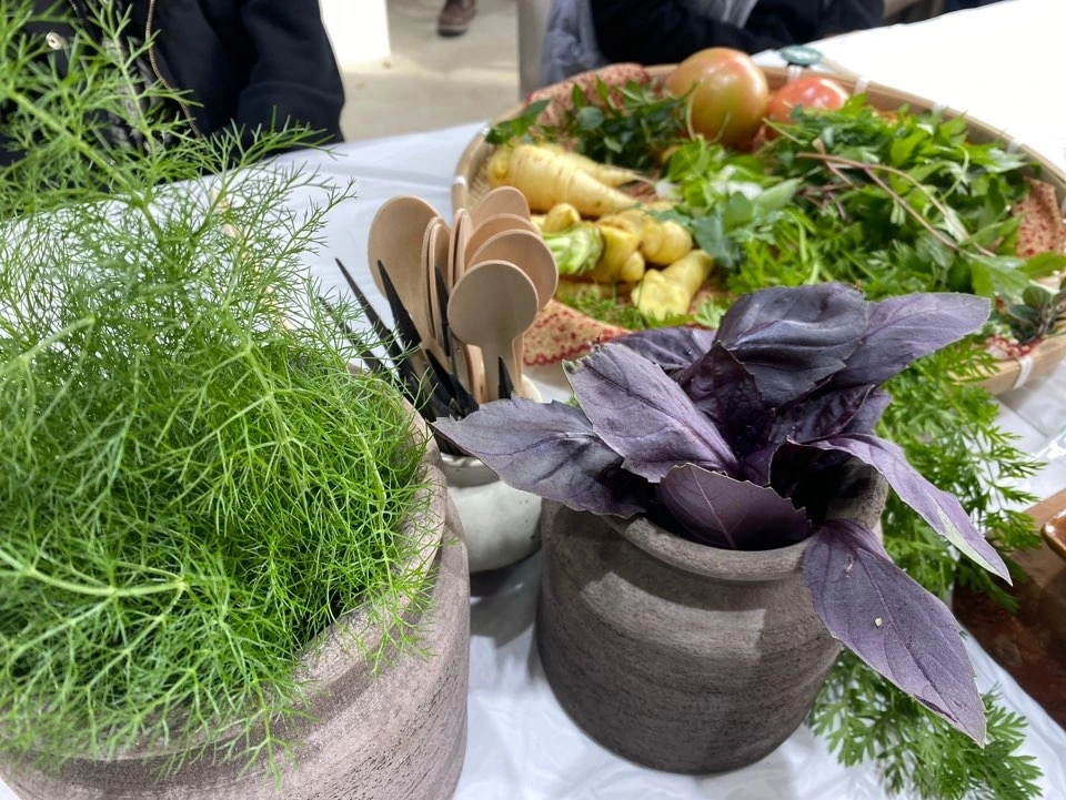 식탁 앞에 놓인 야채와 풀들의 향을 하나하나 맡으며 토끼처럼 풀을 씹어 먹었다. '찰지다'는 말로는 어림도 없는 토마토의 놀라운 식감과 크지도 않은 눈을 눈썹을 잔뜩 밀어 올려 동그랗게 뜨게 하는 레몬 바질의 향은 말 그대로 신선한 충격이었다. 아직도 그 향이 아찔하게 맴돈다. 나름 원재료를 손으로 다듬는 일을 좋아해서 요리를 자주 하는 나인데, 지금껏 내가 만져온 것은 가공에 가공을 더한 것들이었구나라는 생각이 들어 풀 앞에 잔뜩 식탐을 냈다. 하얀 당근을 토마토 잼에 발라 오도독 씹어 먹으며 진짜 땅에서 난 것을 먹는 감각을 만끽했다. 언젠가 농사를 짓고 싶다는 희대표 언니, 새로운 것에 호기심이 많은 희블리 언니도 함께 왔으면 좋았겠다 생각한 시간, 한 마디로 사랑하는 이를 떠올리게 하는 식탁이었다.