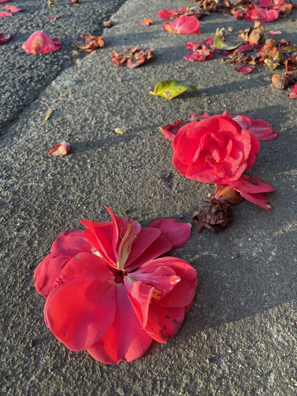 찬 바닥에 떨어진 동백과 푸른 하늘에 꼿꼿이 달린 동백은 뭐가 다른가