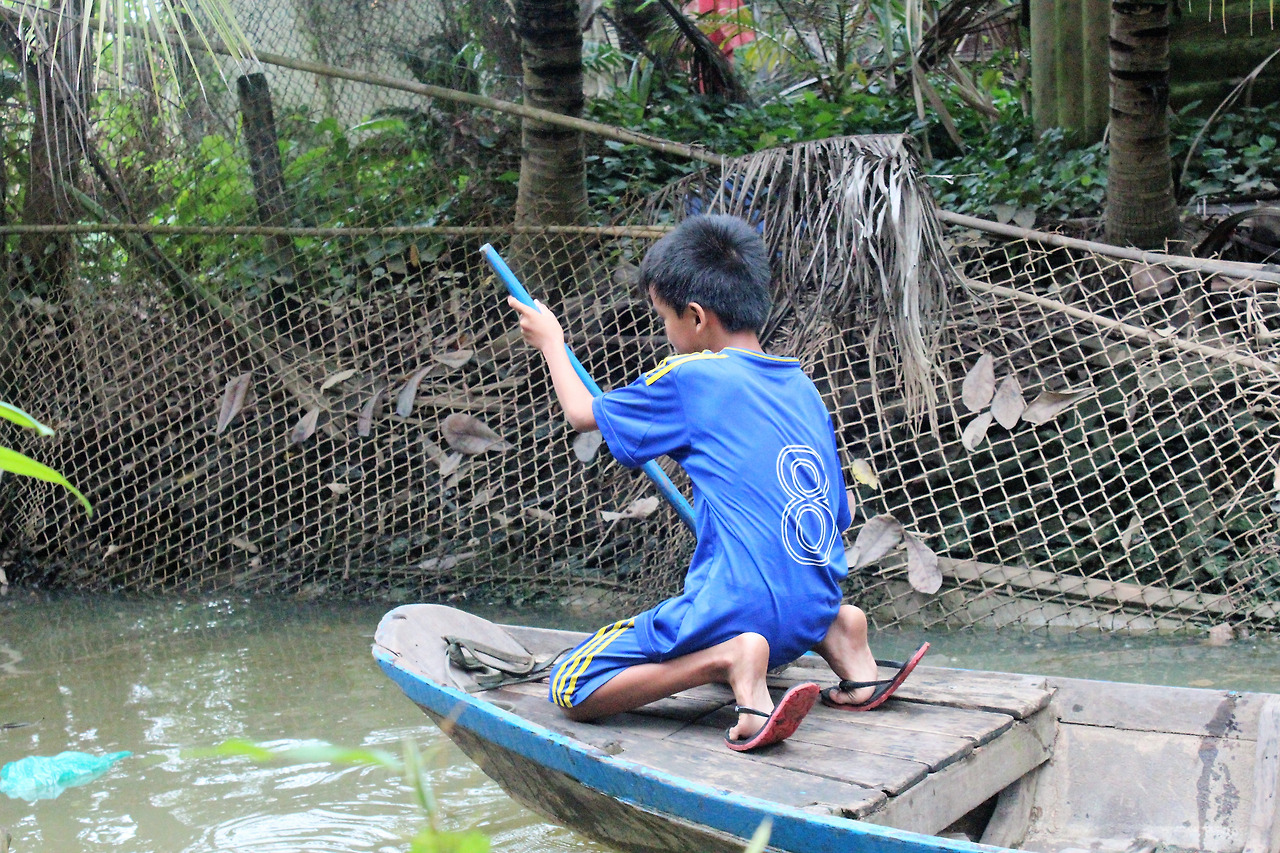 동네를 휘저으며 달려 다녀도 어색하지 않을 것 같은 나이였지만, 응우웬은 그 작은 손으로 노를 젓는 것에 더 숙련돼 보였다. 응우웬의 아버지는 일을 나가셔서 밤늦게 들어오시기 때문에, 남겨진 응우웬과 여동생은 먹을 것이 없을 땐 이렇게 집 옆의 물가에서 고기를 잡았다. 해맑게 노를 젓는 아이들의 모습에 현지 스텝이 들려준 이야기가 마음을 아프게 했다.