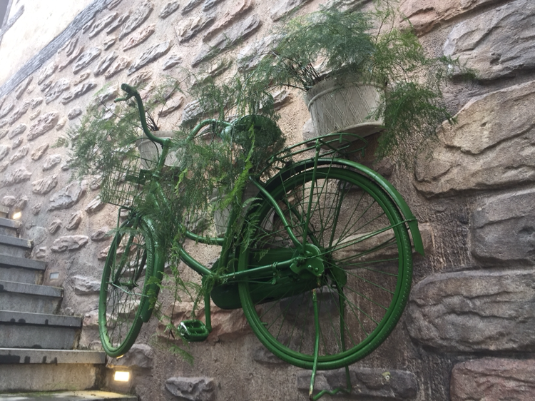 바나힐에서 내가 제일 좋아하는 사진. 초록자전거 그리고 돌담.