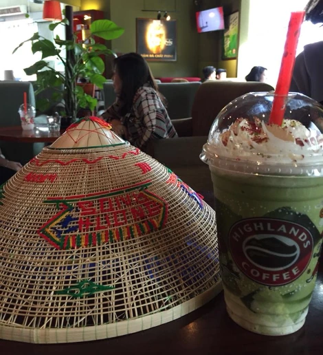여기저기를 둘러보는 우릴 기다리다 지쳐서 아까본 그 자리에 있겠다던 엄마가 사라졌다. 엄만 우리가 어렸을적 우릴 한번도 잃어버리신 적이 없으셨는데, 우린 엄말 잃어버리고 말았다. 우리가 산 물건은 양손 가득 그대로 있었는데. 난 약속장소에 있고 역시나 큰딸인 언니는 부랴부랴 엄마를 찾아나섰다. 건물 크기로 보니 대략 10~15분 정도의 불안을 지나면 결국 다시 우리 셋이 만날거라 생각했기에, 세상 태평한 나는 그냥 차나 한잔 마시려고 바로 앞 카페를 들어갔다. 베트남의 로컬 프랜차이즈 카페였는데 지나치게 맛있었다. 그와중에. 아까 꼰시장에서 득템한 모자와 함께. 총 5천원의 행복이었다.