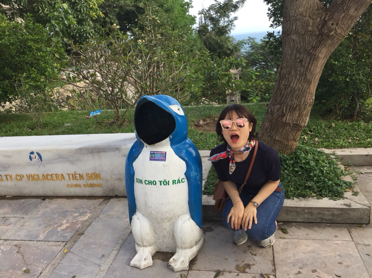 다낭 앞 바다를 보고 우뚝선 불상. 바구니 광주리배 너머로 보이는 높은 빌딩들이 참 이질적이고도 슬픈 다낭을 바라보고 있다. 크기도 하여라. 전체상을 찍기 위해 얼마나 납작 엎드려야 했던지. 이상하게도 저 높고 웅장한 불상보다 나를 사로잡은 것은 고작, 쓰레기통이었다.