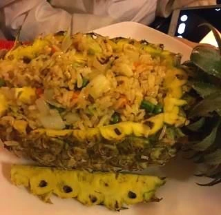 밥을 먹으러 펍 스트릿에 발을 내디뎠다. 그리고 그리웠던 파인애플 볶음밥과 망고쥬스를 먹었다.