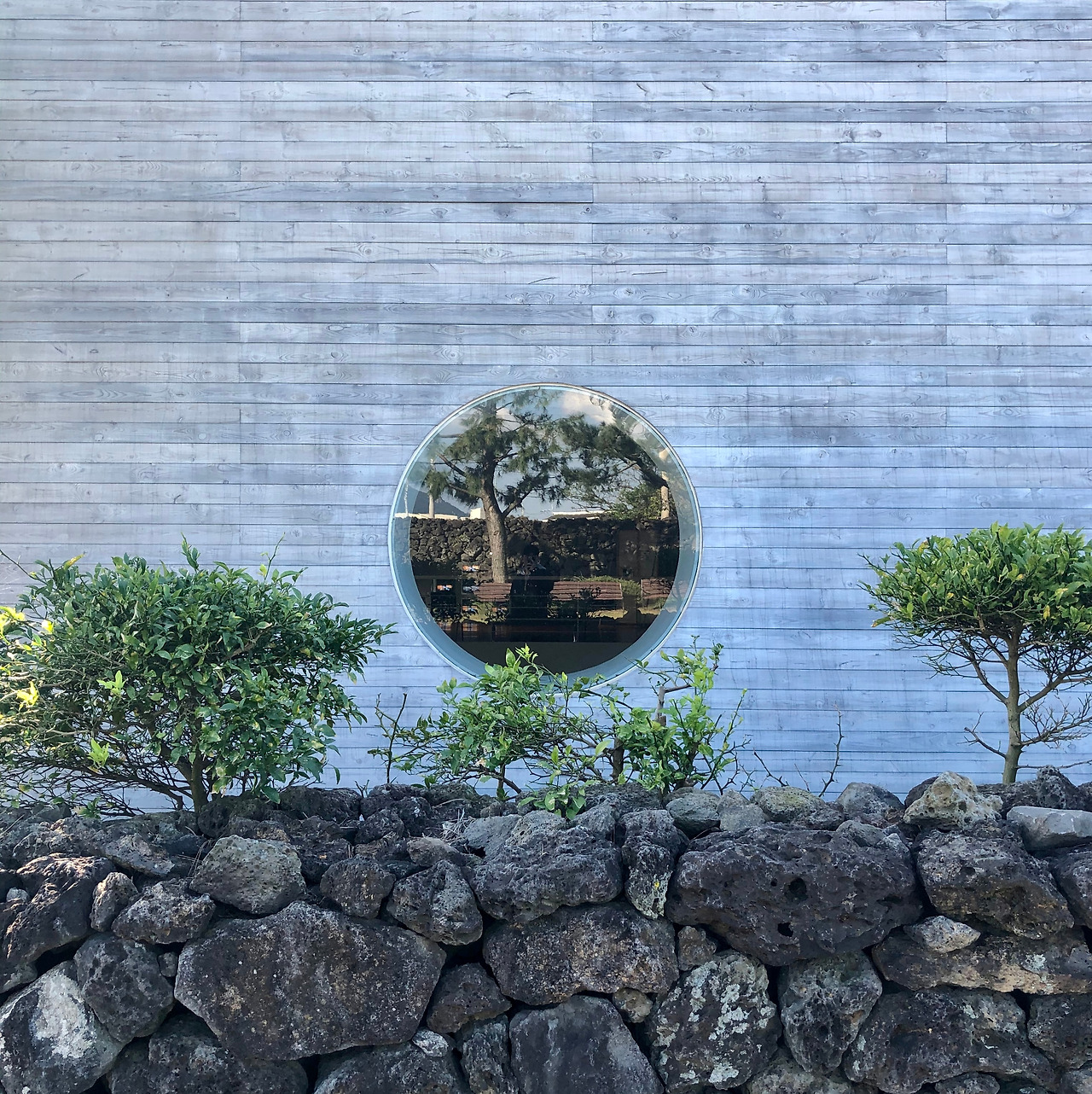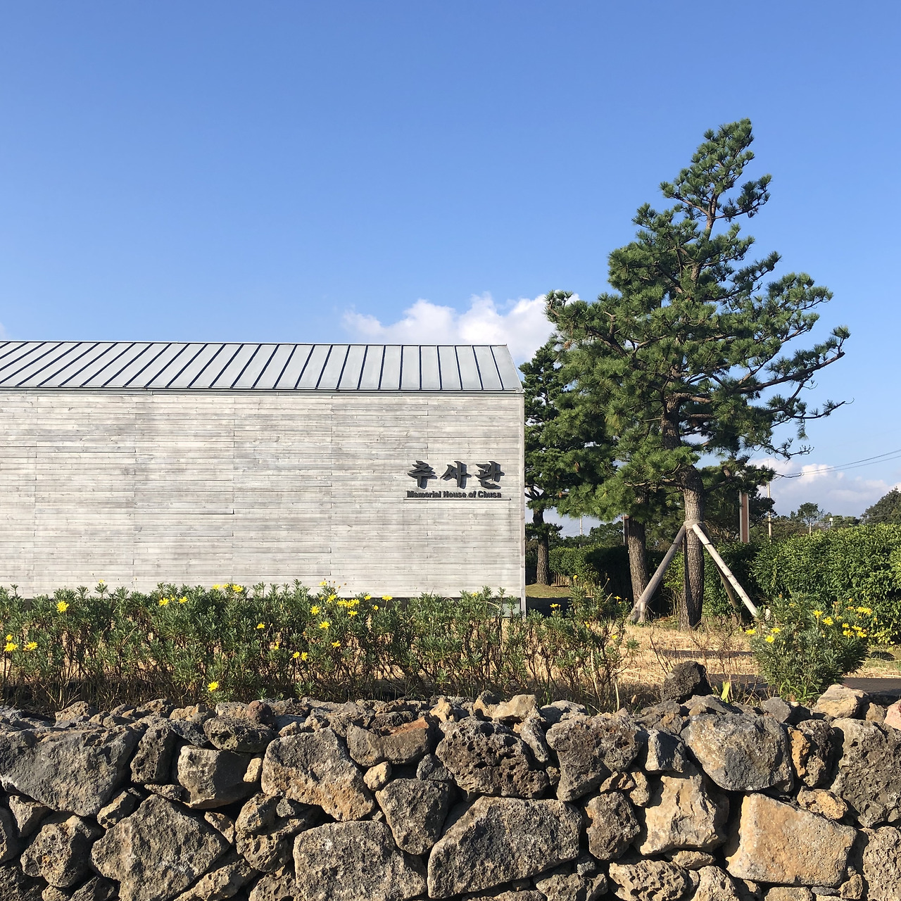 SHAPE; FORM; 처음 추사관을 보았을 때, 그 형태의 단순함을 보고 감탄했다. 회색 빛깔의 나무판자가 덧대어진 외피, 짙은 회색의 강판으로 마감된 지붕, 재료에서 오는 색채가 주변에 깔린 잔디, 그리고 검은 현무암이 쌓인 돌담과 조화를 이루고 있었다. 추사 김정희가 그린 '세한도'에 단정한 색채가 입혀진 느낌이었다. 그리고 입면에 원형으로 열려있는 조그만 창, 이는 형태의 단순함에서 하나의 특이점을 만들고 있었다. 힘이 있었지만 과하지 않았고 창과 마주하고 있는 내부 공간이 점점 궁금해졌다. 또한 무채색의 입면과 땅이 마주하는 곳에 얇은 창문이 길게 늘어서 있었다. 그래서인가, 무거운 색을 가진 단단한 건축이 다소 가벼워지는 것 같았다. 고요한 주변 맥락에 따라 절제되고 소박해진 형태는 건축이 원래 그 자리에 있었던 것처럼 존재하고 있었다.