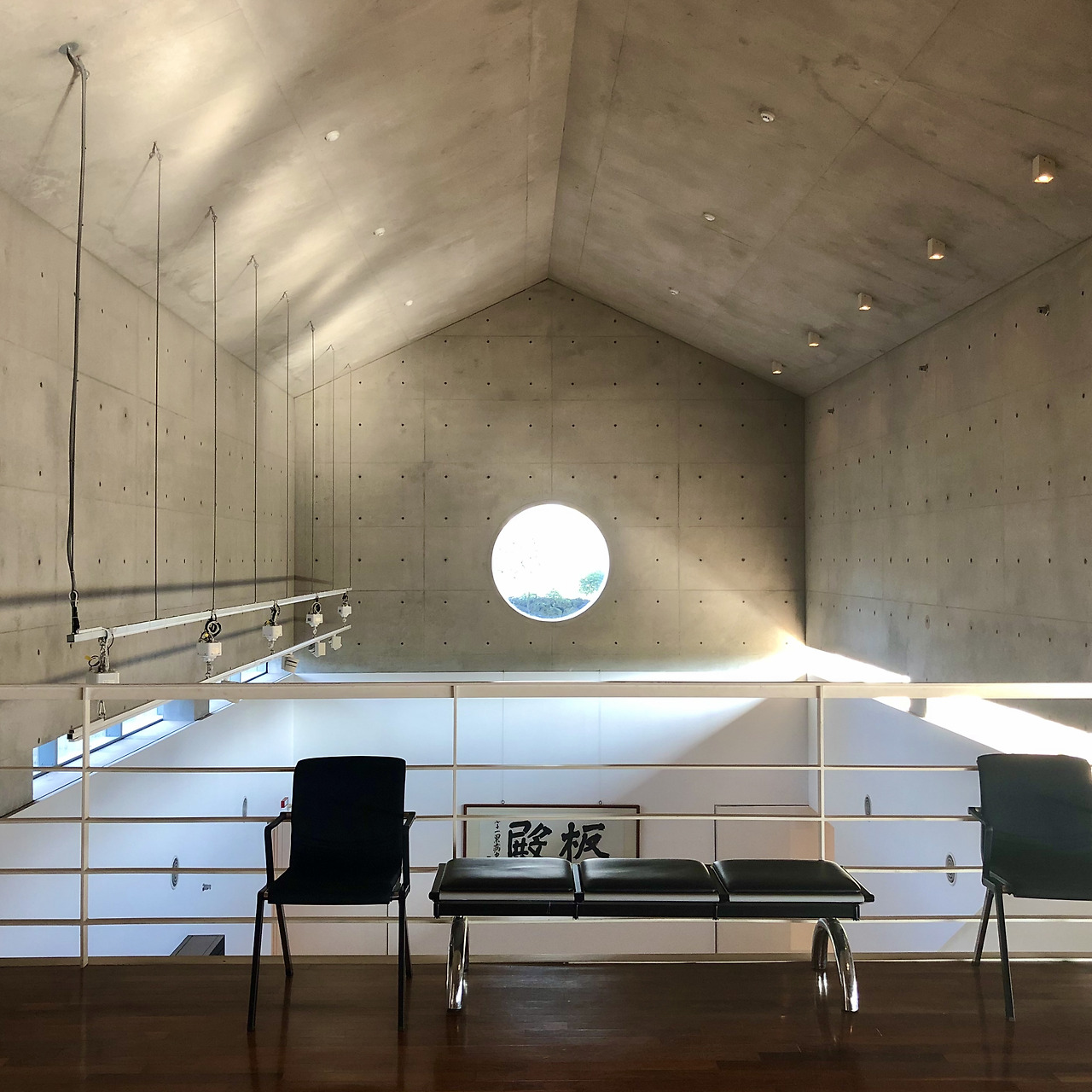 ENTRANCE; BASEMENT; 예상과는 반대로 1층이 아닌 지하에 입구가 있었다. 계단을 내려가서 지하에 들어서니 추사 김정희와 관련된 전시가 펼쳐져 있었다. 다만 지하에서는 들어오기 전에 인지한 매스의 형태를 찾을 수는 없었다. 그리고 전시를 둘러보면서 지하에 묻힌 이 전시관은 외부에서 본 형태의 소박함을 만들기 위해서 절제하고 축약한 결과라고 생각했다. 외부에서 본 소박하고 단단한 그 형태가 가지는 공간을 더욱 기대하게 되었다. 중간중간, 하늘을 향해 열려있는 보이드를 통해 지하에 부족한 빛이 스며들고 있었고 전시를 보는 도중에 '소창다명 사아구좌'라는 글씨를 보게 되었다.