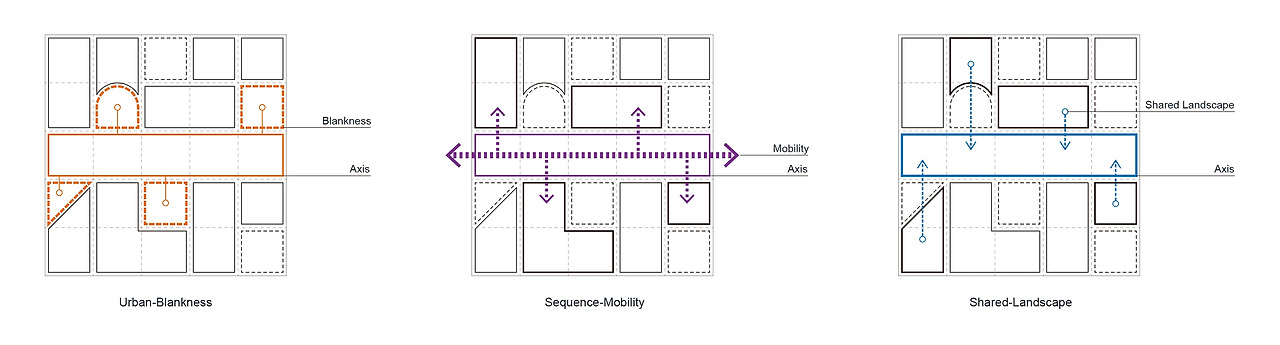 축은 비어있다. 축의 주변으로는 다양한 도시적 형성물이 일정한 규칙과 질서에 의해 형성되거나 존재해왔다. 축은 방향성을 가지는 새로운 공간을 창출하거나 보존해왔으며 이는 연속적인 이동성을 이끌어내고 공간은 공유되는 풍경을 형성한다. 축은 주변과 적극적인 관계를 만들어내면서 동시에 다양한 의미를 만들어낸다.