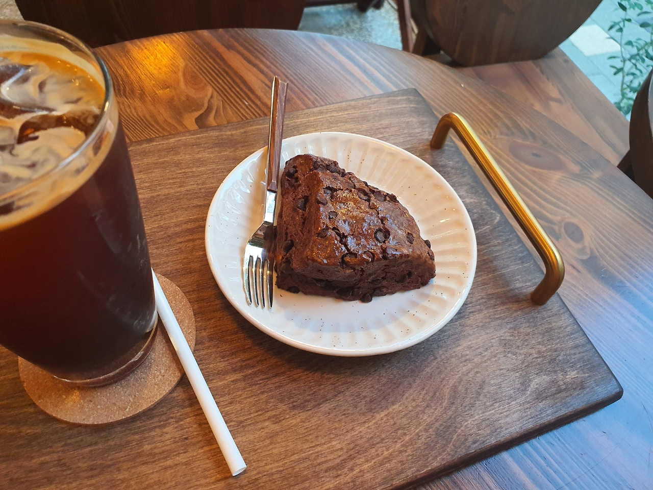 손 뻗으면 닿는 곳에 있는 콘센트와 깨끗한 화장실 깔끔한 커피와 디저트들.