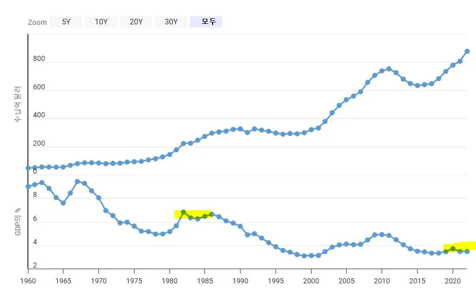 과거 소련과의 냉전 시기인 1981~1989년, 로널드 레이건 대통령 재임 기간에는 GDP 대비 국방비 지출이 6%를 상회했다. 하지만 소련 붕괴 이후 미국의 패권에 도전할 만한 국가가 사라지면서, 이 비중은 점차 낮아졌다.