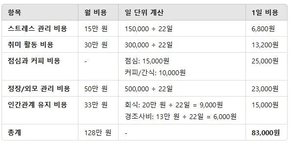 여기에 직장인의 삶을 유지하는 데 필요한 '숨겨진 비용'을 더해보자: