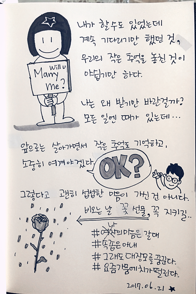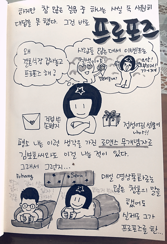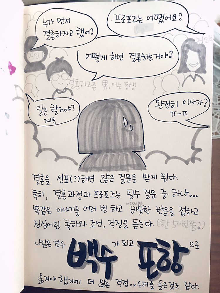 결혼한다고 하면 지인들을 최대한 많이 만나고 인사하고, 또 수 많은 질문 공세를 받는다. 나또한 많은 질문들을 받았고 거의 모든 질문에 대답했지만 단 한가지, 프로포즈만은 예외였다. ㅎㅎ