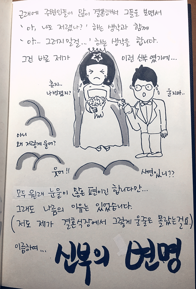 오늘은 그 날의 눈물에 대한 나름의 변명을 전해봅니다. 이 자리를 빌어 저희 결혼식에 와주셨던 많은 분들께 다시 감사드리며 정말정말 저는 울 의도가 없었음을 밝힙니다^^;;