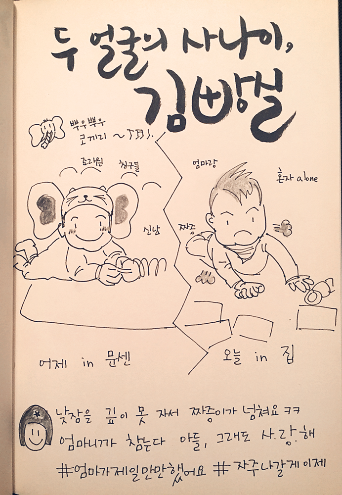 자꾸 밀리는 것보단 한쪽짜리 그림일기로 전환하는게 낫겠단 생각을 해봤어요.