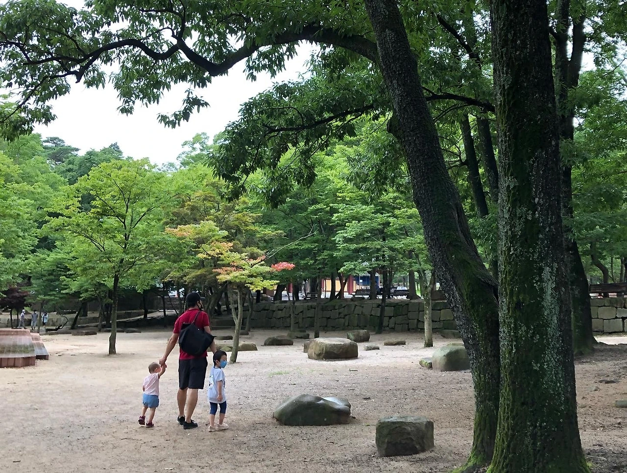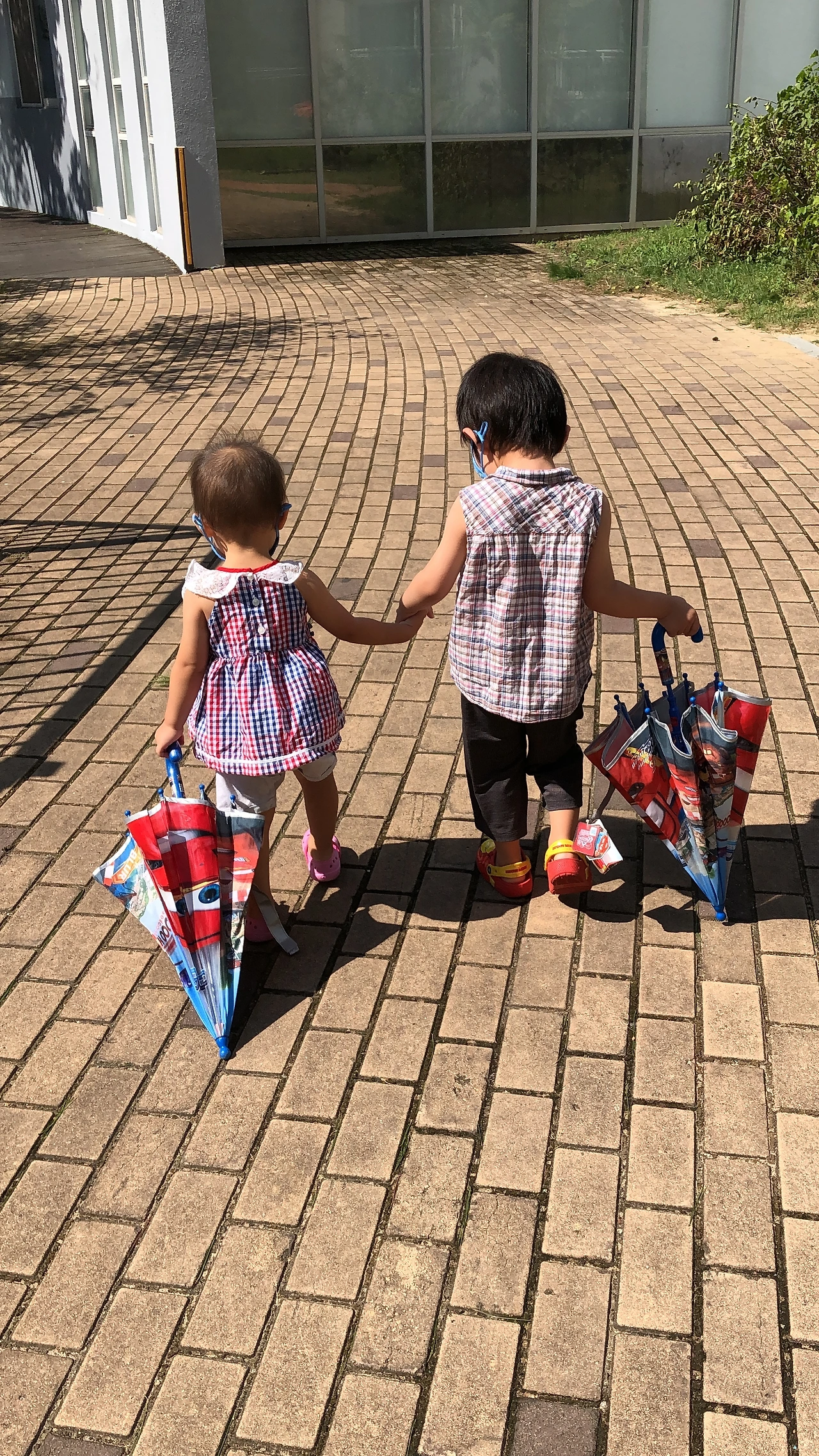 매일 아침 임신 중이라 배부른 엄마가 등원 길을 편히 가려고 손잡으라고 하면 억지로 손을 잡고 걸어가던 실실 남매, 요즘도 똑같다. 얼마 못 가 손을 놓고 각자 갈 길을 간다. 매일 걷는 길이지만 이 순간만큼은 이 뒷모습이 너무 예뻐 힘든 현실도 잊고 짧은 여행처럼 즐겼다.