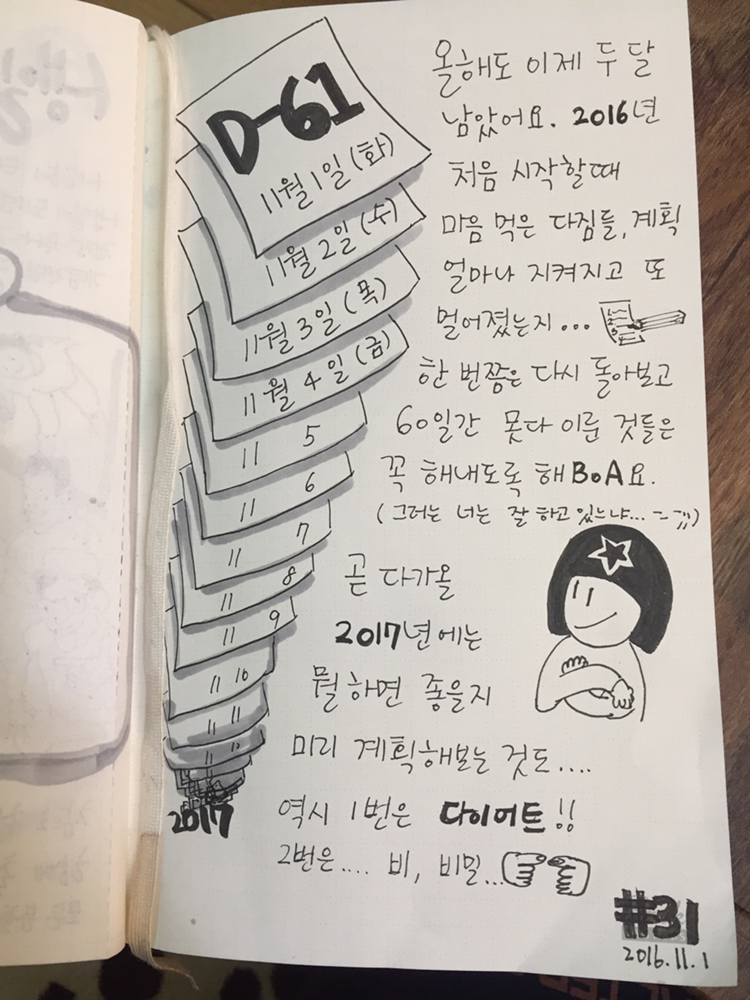 3주만 습관이 된다고 그래서 올해가 가기 전에 하고 싶어 시작한 그림일기가 이제 31일째.