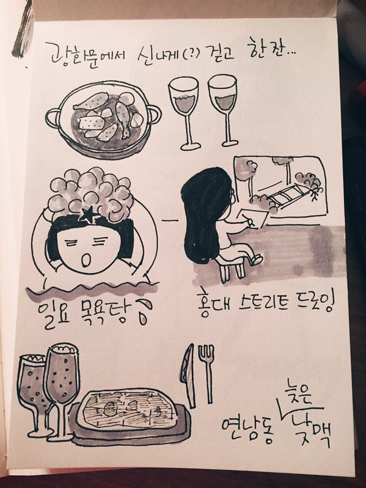 일요일 아침 목욕-플레이 플래닛 호스트로 홍대 스트리트 드로잉 2회차 진행-비타민언니 국가 공인 자격증 합격 축하 먹방 데이트가 쭉 이어졌다.