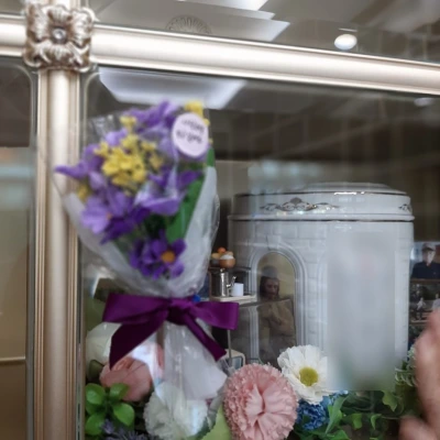 아빠에게 갖다 드릴 꽃다발을 만들고,