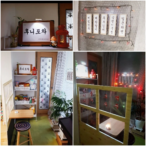 남편에게 생일 선물로 베란다에 미니 포차를 만들어 주었다.