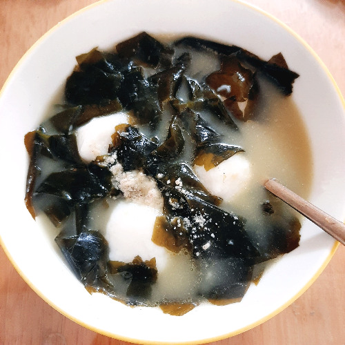 아들은 '새알'이라는 말에 난감한 표정을 지으며 미역국을 빤히 바라만 보았다.