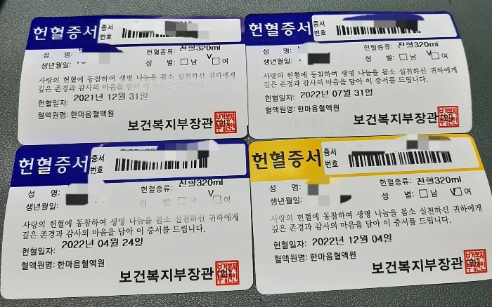 그렇다. 남편은 봉사를 하고 싶은데 가진 게 몸뚱이뿐이라 헌혈을 하는 것이고, 나는 내가 받은 은혜를 갚기 위해 헌혈을 하는 것이다. 그렇게 작년 12월 31일 헌혈을 시작했다.