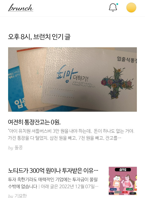 그러다 (사실, 내 브런치에서 가장 인기 있었던 글은 아니었지만) 브런치가 인기글에 내 글 중 하나를 노출시켜 주었다.