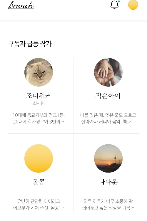 나는 일주일에 한 번 쓰던 에세이를 두 번으로, 세 번으로 늘려 부지런히 글을 썼다. 집중해서 글을 쓸 때면 내 얼굴은 발갛게 달아올라 홍조를 띠었다. 그러다 한 번은 구독자 급등 작가에 내 브런치가 띄워졌다. 사실 급등이라는 게 어떤 기준일지는 모르지만, 구독자가 아주 많이 는 시점은 아니었기에, 아... 열심히 한다고 브런치가 나를 밀어주는구나. 하는 느낌을 받을 수 있었다. 누군가 나를 응원해주고 있다 생각하니 그저 고마웠다. 더 열심히 해야겠다는 생각이 들어 외면할 수가 없었다.