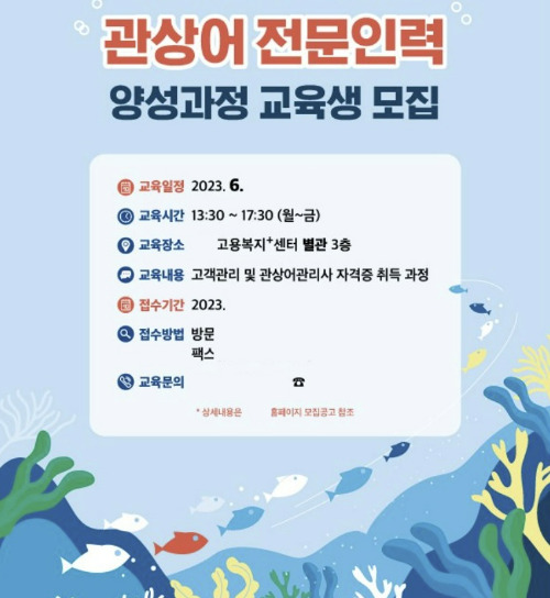 물고기 키우는데도 자격증이 필요한가? 싶었다. 호기심에 검색을 좀 해보니, 시에서 주력하는 사업과 연계하여 관상어 전문가를 키우고, 취업과 연계하겠다는 계획이었다.