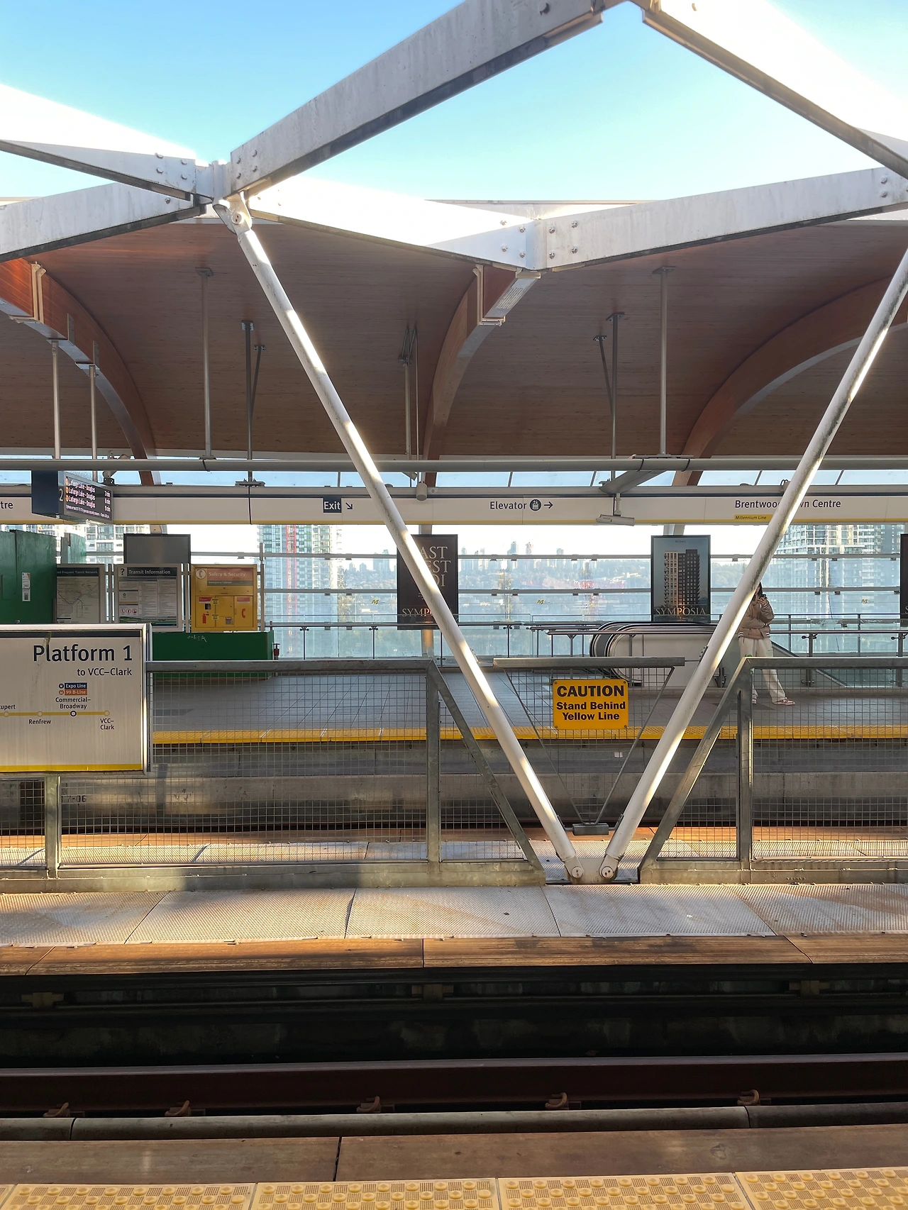 아직 나에게는 컴패스 카드(캐나다 교통카드)가 없기에 두 다리가 유일한 교통수단이었다. 스카이 트레인(캐나다 전철) 역에서 교통카드를 구매할 수 있다하여, 30분 남짓 걸어서 도착한 ‘길모어 스테이션’. 캐나다 계좌 개설 전이라 신한 쏠트래블 카드만 믿고 무작정 갔다.