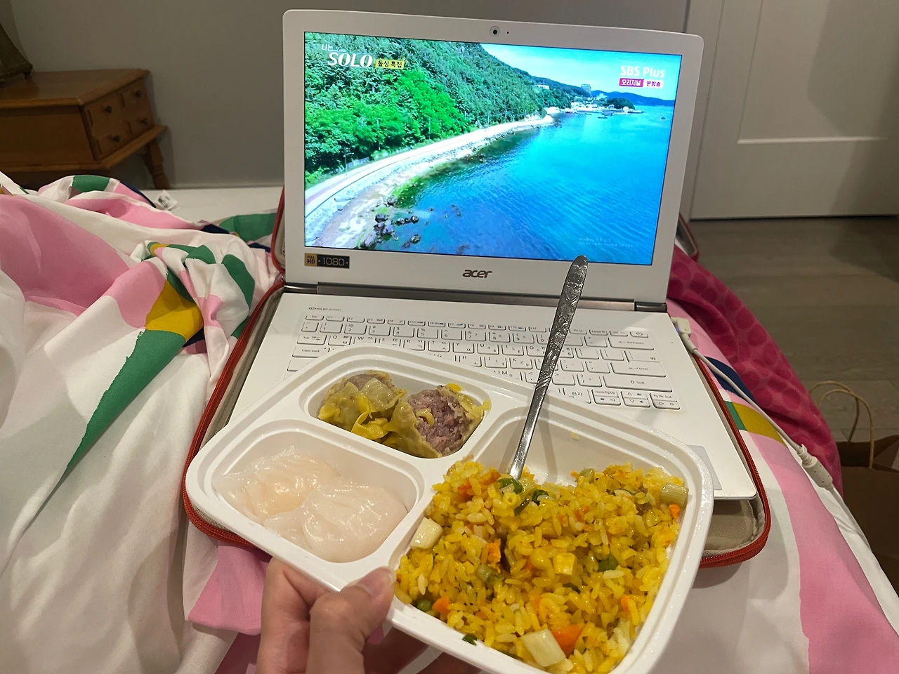 내가 시킨 건 컵밥인데, 제육과 잡채와 샐러드 구성이다. 엄청 만족! 김밥도 몇 번 사 먹었는데 괜찮았다.