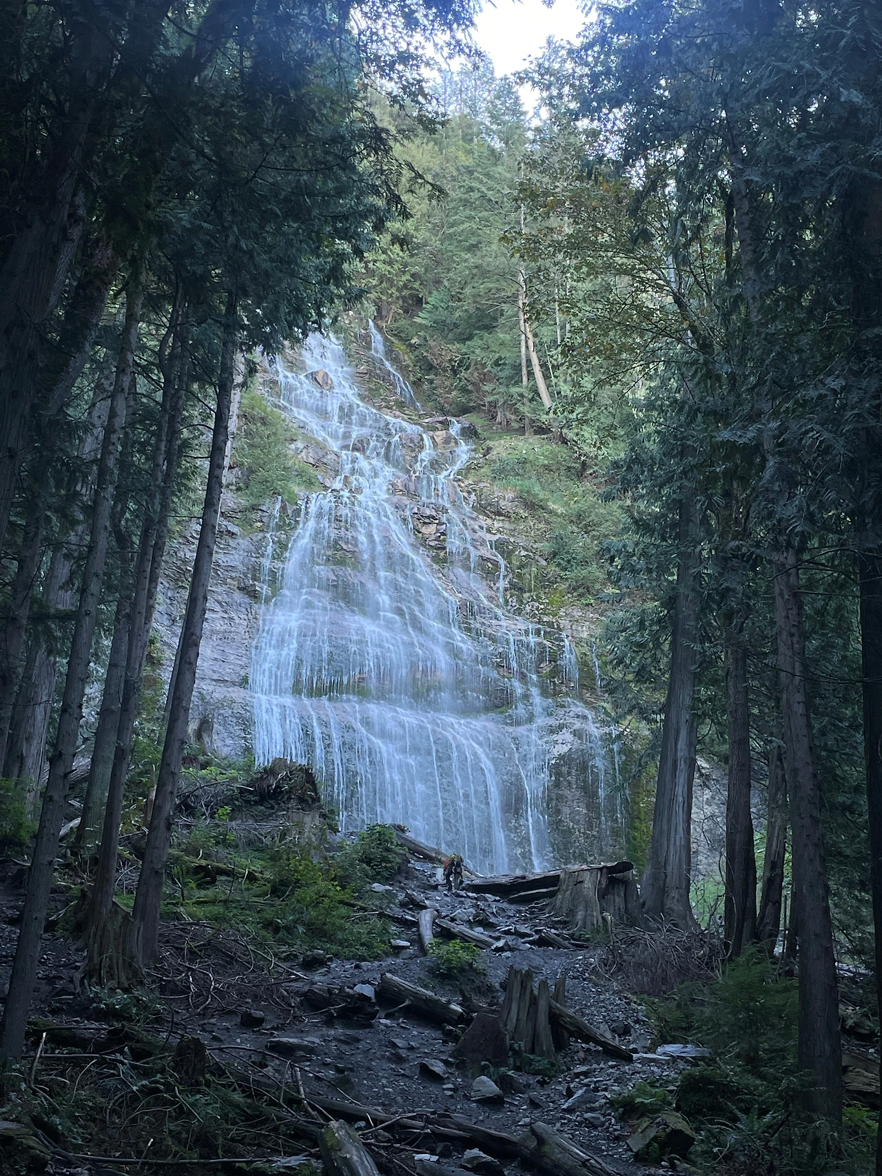숲 안쪽에 조용히 숨어서 흐르는 가느다랗고 여리여리한 폭포. 고요한 아름다움이 느껴졌다.