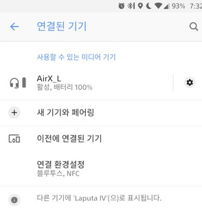 왼쪽 유닛이 메인으로 연결된 경우 사진에서 보이는 것처럼 연결된 기기명이 AirX_L이라고 나옵니다. 이때 오른쪽 유닛은 반드시 케이스에 넣어둡니다.