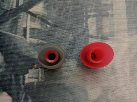 수치로 말씀드리자면 좌측의 이어팁이 내경 3.8mm~4.5mm 노즐의 제품에 적합한 제품이라면 AIR-X의 이어팁은 최소 5.5mm 이상의 내경을 가진 제품이어야지 결합한 후에도 이상 없이 사용 가능했습니다. 이 두 제품의 차이는 겨우 1mm 지만 그 차이를 극복하기에는 AIR-X의 벽은 너무 높았습니다.