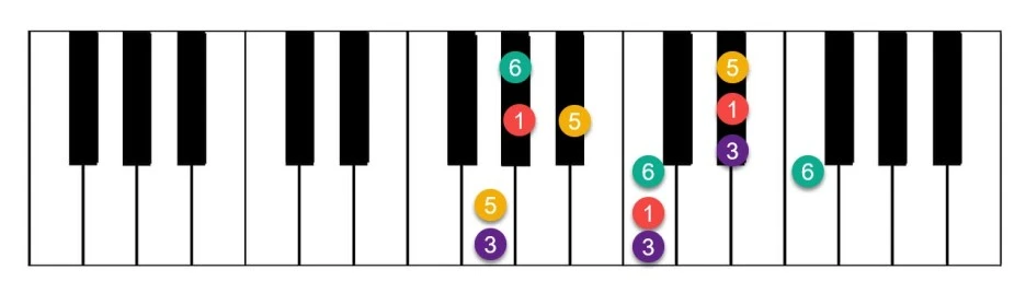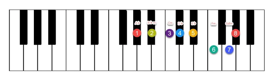 6. 1-5-6-3-4-1-2-5-1 코드 진행의 건반 위치(A♭코드 기본 위치 기준)