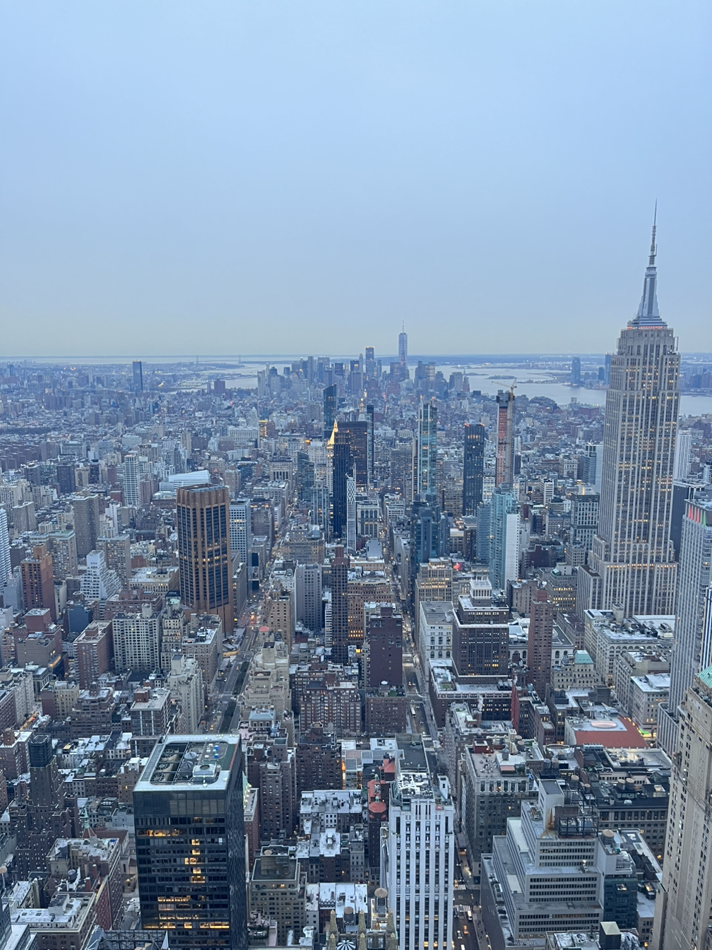 이 클래식한 뉴욕 시티뷰를 볼 수 있는 대표적인 전망대가 5곳이 있다. 바로 엣지(Edge), 록펠러센터(Top of the rocks), 엠파이어 스테이트 빌딩(Empire State Building), 더 써밋(The Summit), 원 월드 트레이드 센터(One World Trade Center)이다. 나는 최근에 가장 핫하다는 써밋 전망대에 다녀왔고, 일몰부터 어두워지기까지 걸리는 약 두 시간의 시간 동안 맨해튼 변천사를 조용히 감상했다.