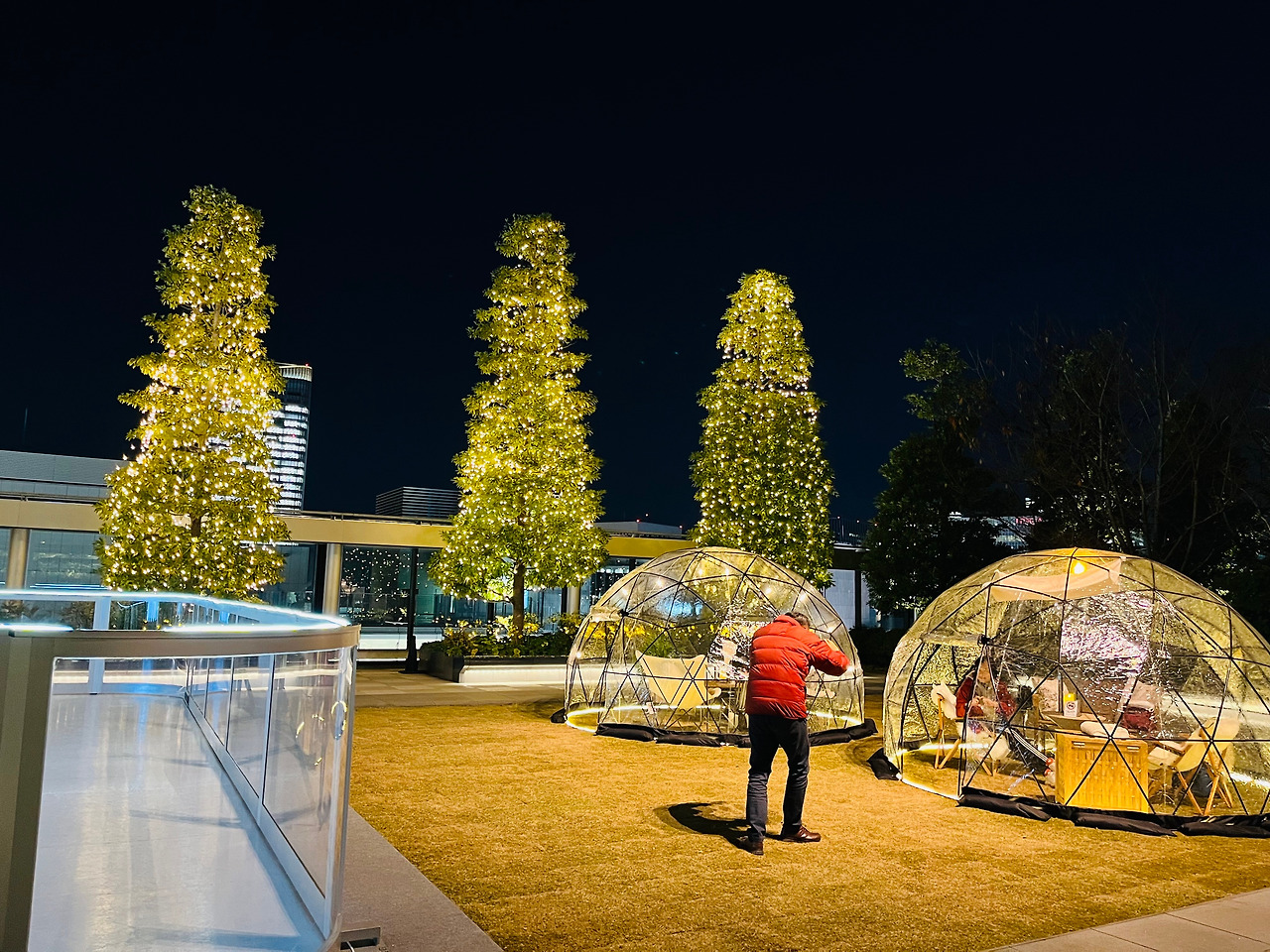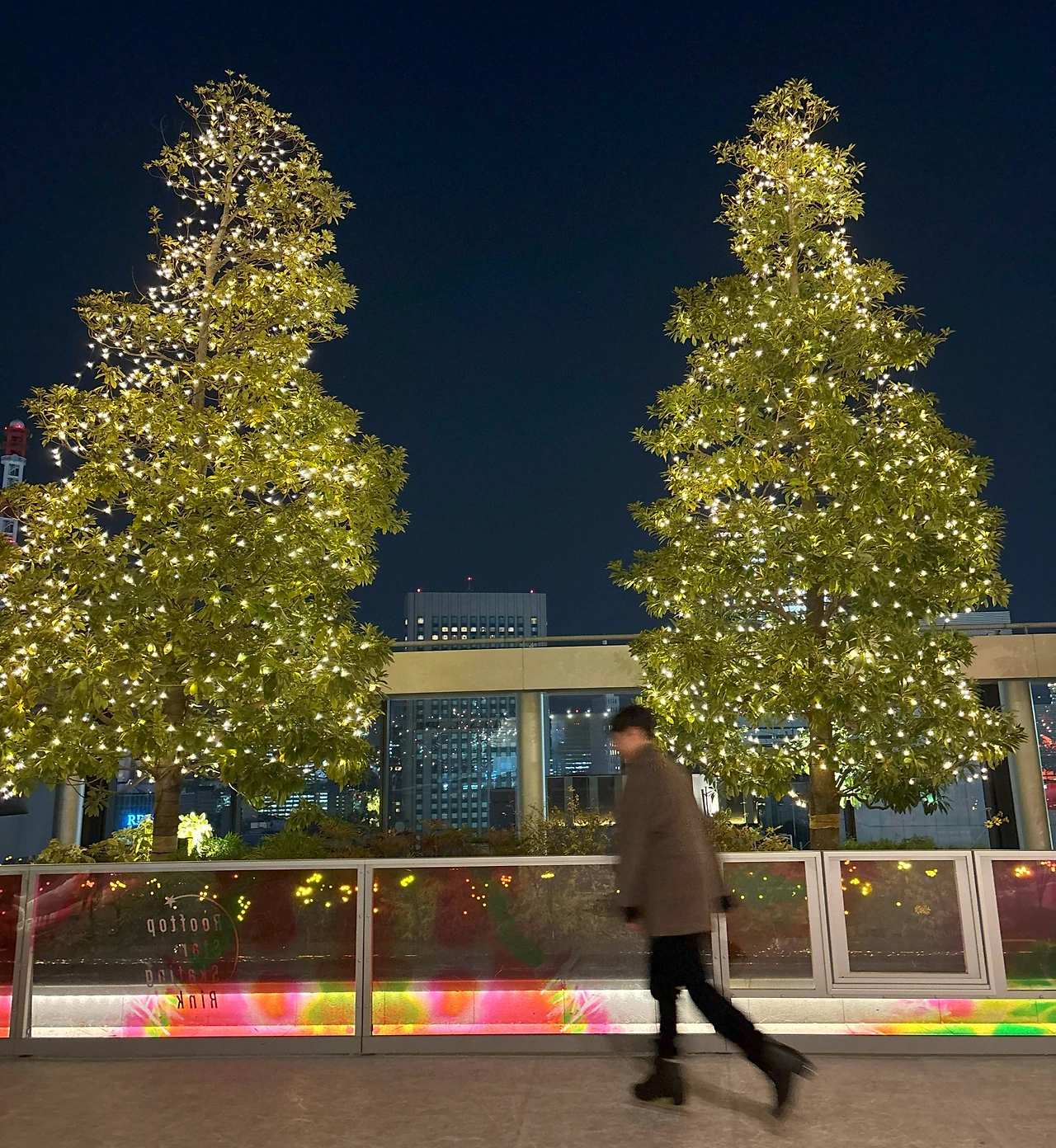 겨울의 긴자식스는 차가운 공기 속에서 따듯한 감성을 품고 있다. 크리스마스 시즌이 다가오면, 로비와 외관은 화려한 일루미네이션으로 빛나며, 매장의 쇼윈도는 저마다 다른 겨울 이야기를 펼친다. 하지만 진정한 낭만은 옥상에서 바라보는 도쿄타워 야경과 함께한다. 겨울 특유의 맑은 공기는 시야를 더욱 선명하게 만들어, 도쿄타워의 빛이 한층 강렬하게 다가온다. 그리고 마지막 낭만의 클라이맥스는 겨울에만 열리는 스케이트장이다.
