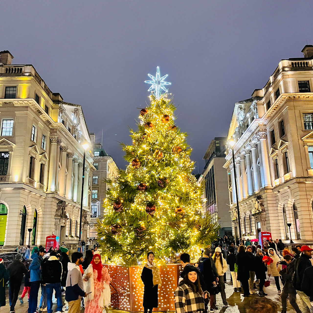 코벤트 가든은 런던에서 가장 낭만적인 크리스마스 분위기를 느낄 수 있는 곳 중 하나이다. 거대한 크리스마스트리가 중심을 잡고 있는 광장은 은은한 조명 아래 포근하고 차분한 분위기를 자아낸다. 대형 오너먼트와 반짝이는 미슬토(겨우살이) 장식이 가득한 이곳은 크리스마스 분위기를 만끽하기에 더없이 좋은 장소이다. 근처 레스토랑에서는 특별한 크리스마스 에디션 메뉴를 즐길 수 있고, 거리의 퍼포머들의 공연은 여행에 색다른 재미를 더해준다. 눈이 내리는 날이라면, 코벤트 가든의 낭만은 한층 더 깊어질 것이다.
