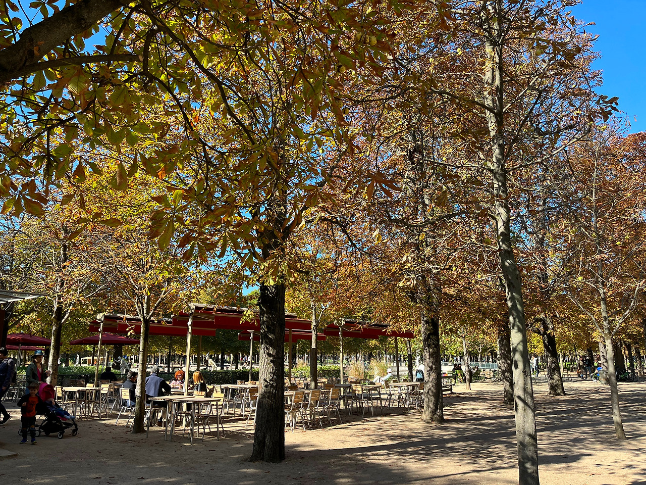 완연한 가을이 오기 전 9월의 튈르리는 선명한 붉은 단풍을 볼 수 없지만, 야외에서 오래 머무를 수 있는 최적의 온도가 함께한다.