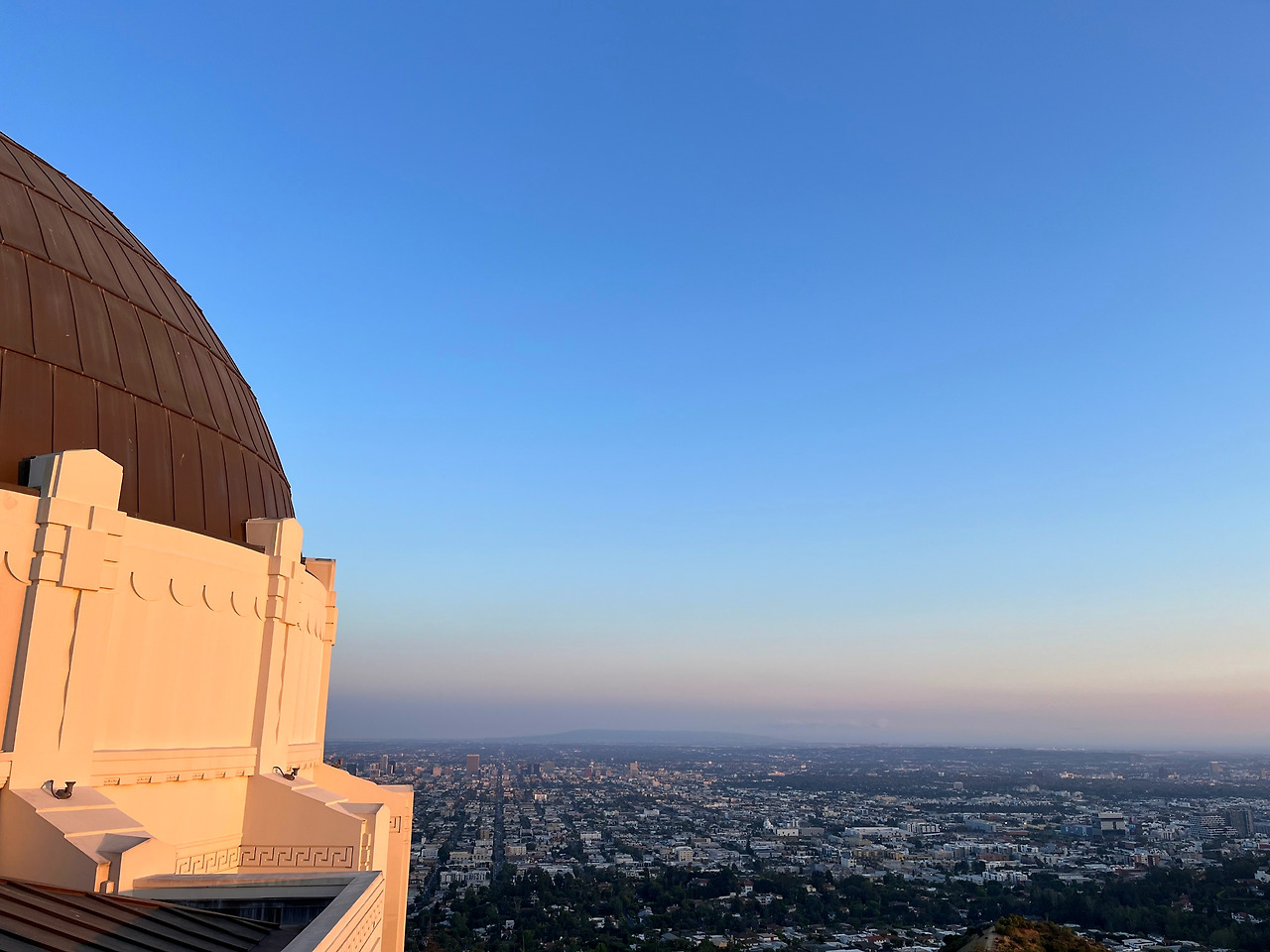 그리피스 천문대 앞은 잘 정돈된 잔디가 깔려있어 많은 사람들이 피크닉을 즐긴다. 천문대의 클라이맥스는 단연 석양에 물든 LA 전경을 보는 것이다. 라라랜드에서 보랏빛 석양 아래 주인공들이 춤추는 장면은 영화 속 가장 명장면이기에 놓칠 수 없다.
